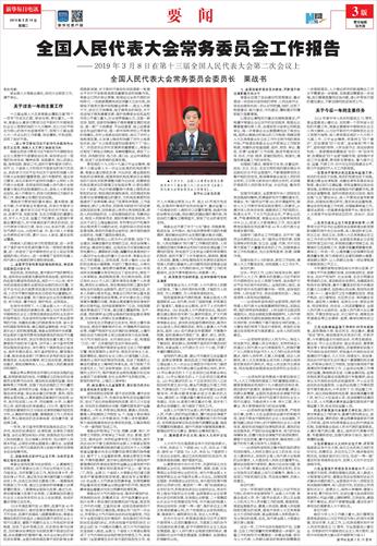 | ——2019年3月8日在第十三届全国人民代表大会第二次会议上全国人民代表大会常务委员会委员长栗战书