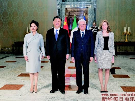 ▲3月22日,国家主席习近平在罗马同意大利总统马塔雷拉举行会谈。会谈前,马塔雷拉总统为习近平举行隆重欢迎仪式。这是习近平和夫人彭丽媛同马塔雷拉总统和女儿劳拉合影。