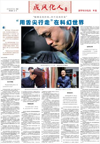 这就是记者最初见到他时的样子——像个小鸡一样在“啄”键盘。他形容自己是一个“用舌尖行走”的人。“不过‘啃’键盘的打字速度比不上双手,时间长了,脖子跟脊背连接处也酸痛得厉害。”陈伟起说。