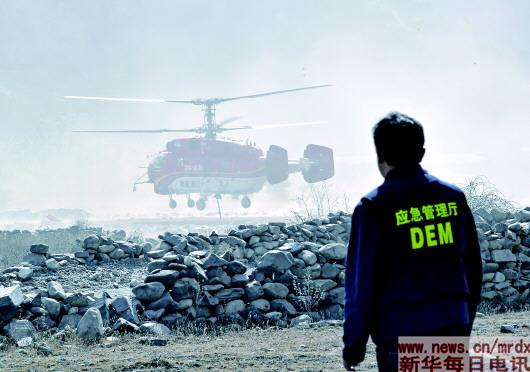 4月2日,一架救援直升机准备起飞开展空中灭火工作。