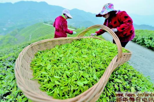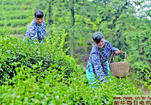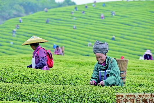 3月30日,茶农在贵州铜仁市松桃苗族自治县正大镇茶场采茶。