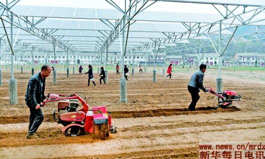 4月2日,村民在洛南县三要镇北司联村光伏扶贫电站的光伏农场备耕,准备种植中草药白芨。