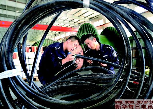 日前,上海市公安局奉贤分局历经2个月的缜密侦查,成功侦破一起假冒注册商标案,一举捣毁一生产、销售假冒某品牌电线、电缆犯罪窝点,抓获以陈某为首的犯罪团伙,涉案金额3000余万元。目前,涉案的4名犯罪嫌疑人均已被依法刑事拘留,案件仍在进一步侦办中。 新华社记者凡军摄