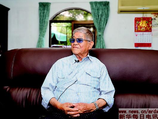 93岁的老战士黄清在家中接受记者采访(3月21日拍摄)。