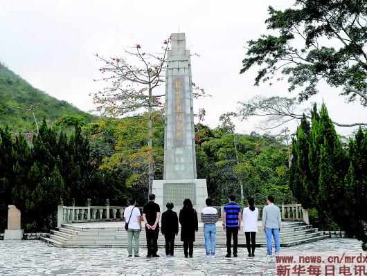 在纪念东江纵队港九独立大队的烈士碑园,20米高的“抗日英烈纪念碑”巍然耸立(3月21日拍摄)。图片均由新华社记者李钢摄