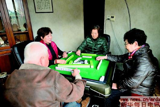 | ▲午后,参加抱团养老的老人们在一起打麻将(3月25日摄)。 |