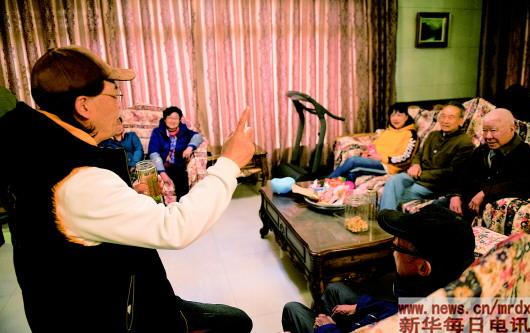 | 参加抱团养老的老人们在商量下周的一次出游(3月29日摄)。