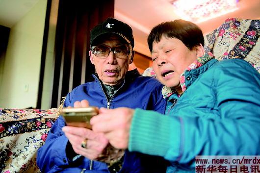 | ▲80岁的朱荣林(左)和71岁的王荷花在手机上查看股市行情(3月29日摄)。 |