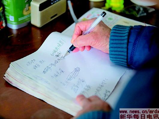 | ▲71岁的王荷花在修改晚上的菜单(3月29日摄)。 |