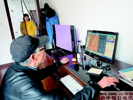 | ▲麻将“三缺一”,58岁的陈姮前来喊正在网上下象棋的80岁的朱荣林打麻将(3月25日摄)。老人们平常都不关房门,保持了彼此间最大的信任和善意。 |