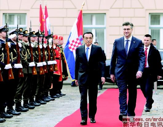 新华社萨格勒布4月10日电(记者郑明达、王卓伦)当地时间4月10日上午,国务院总理李克强在萨格勒布总理府同克罗地亚总理普连科维奇举行会谈。