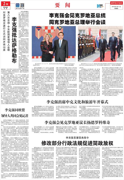李克强会见克罗地亚总统同克罗地亚总理举行会谈