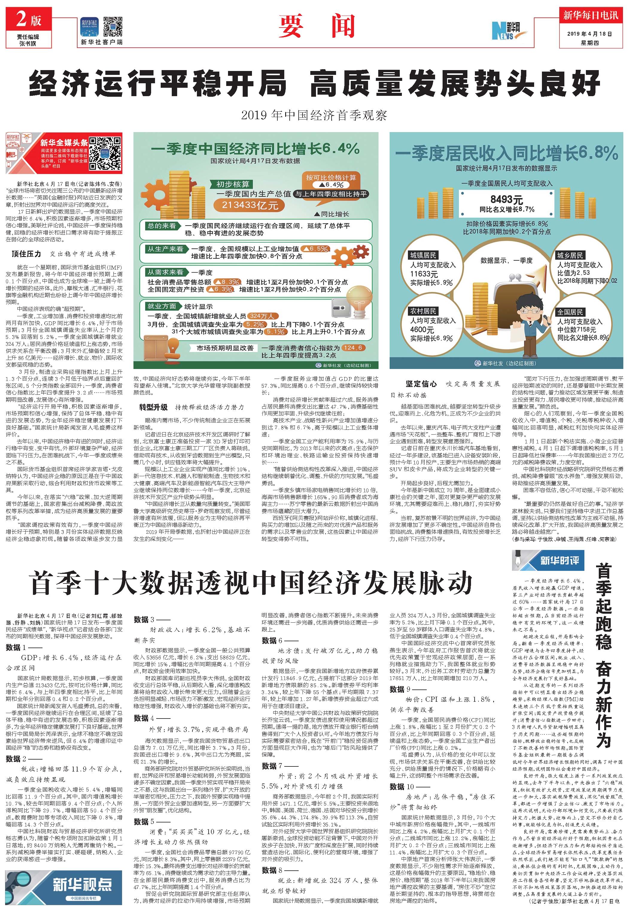 经济运行平稳开局 高质量发展势头良好