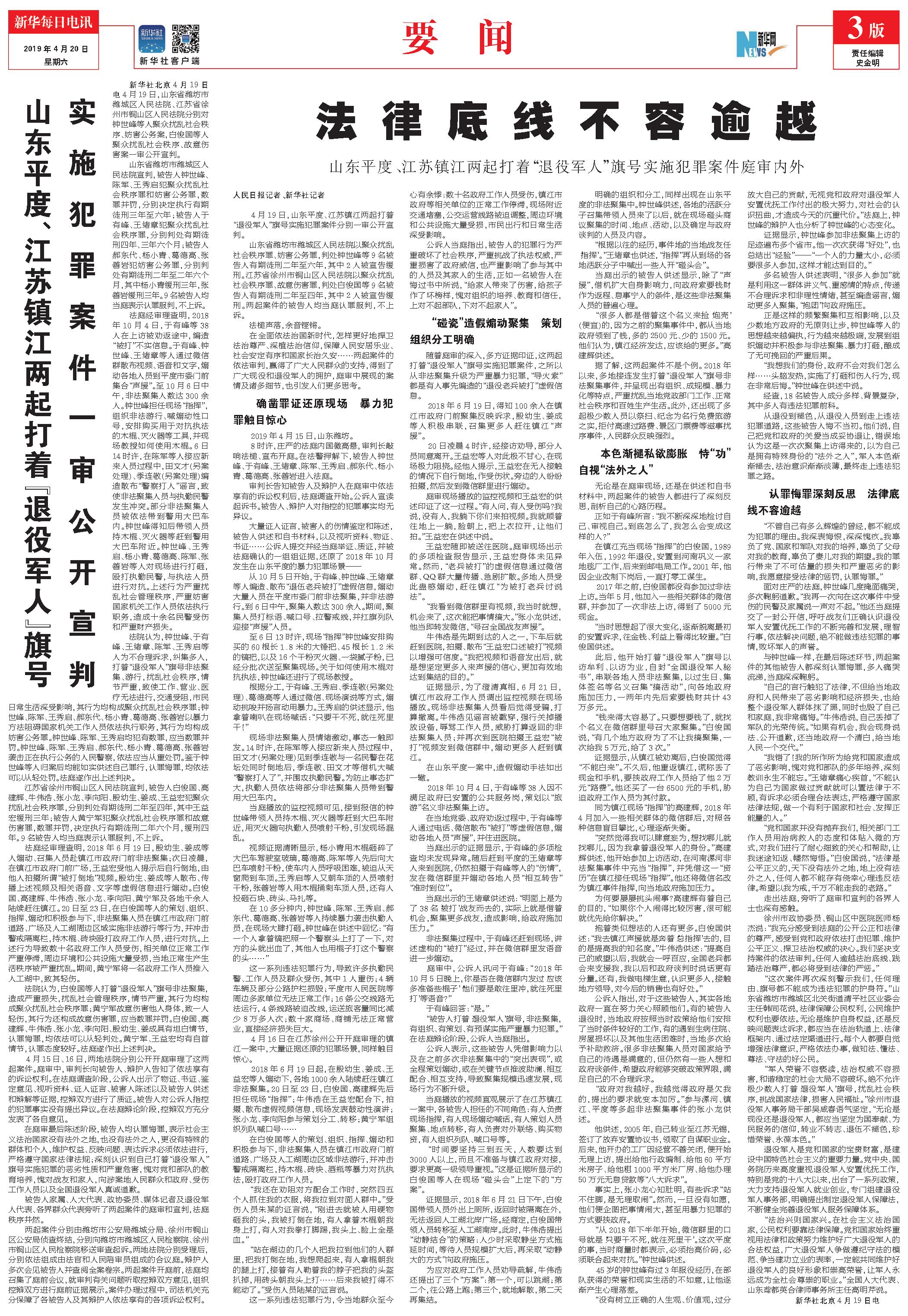 山东平度、江苏镇江两起打着“退役军人”旗号实施犯罪案件一审公开宣判