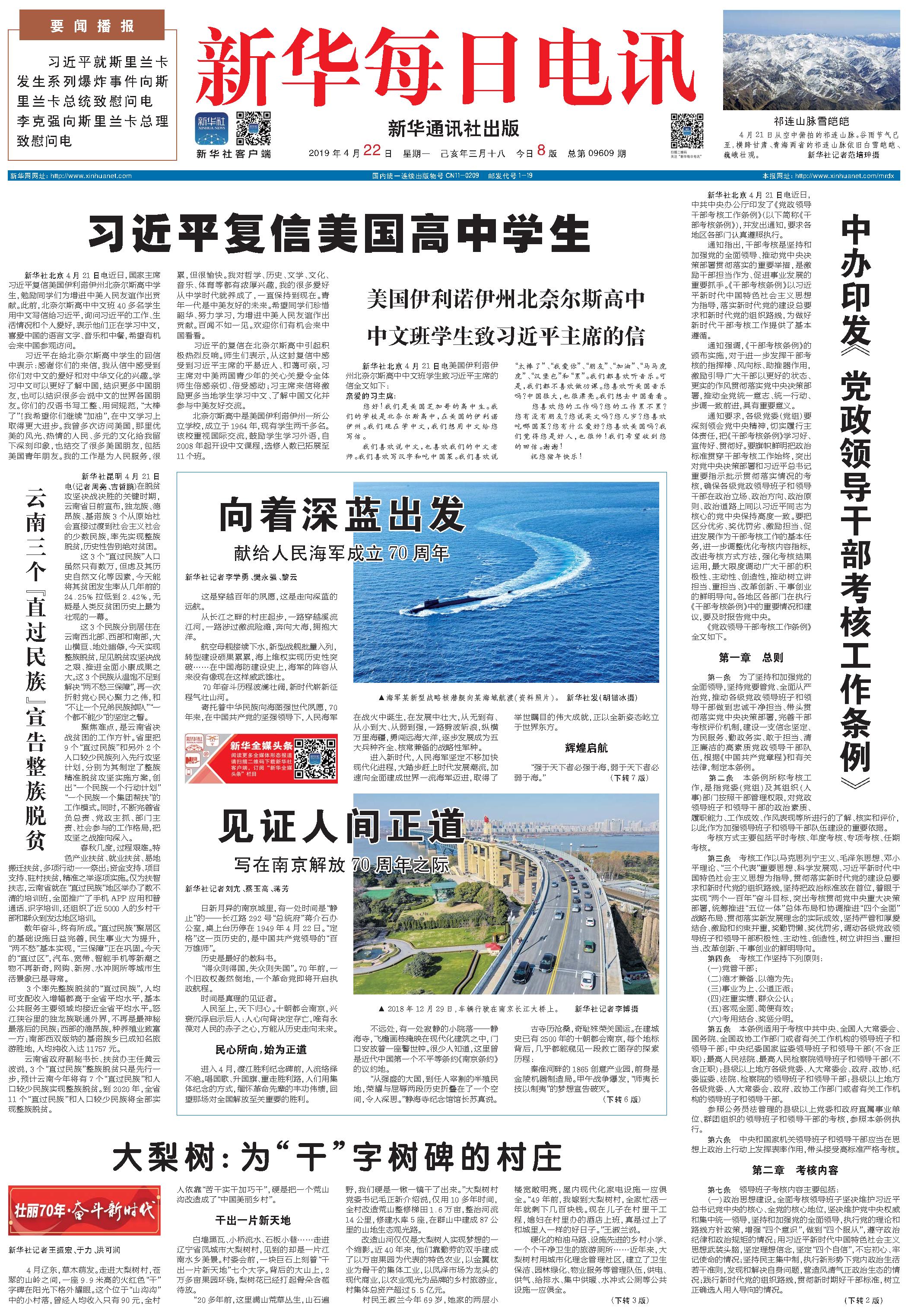 中办印发《党政领导干部考核工作条例》 (2019年04月22日) |