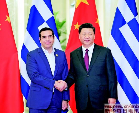 齐普拉斯表示,希腊和中国都拥有悠久文明传统。希中关系有历史深度,也有现实广度。共建“一带一路”是个伟大的倡议,既包含中国古代哲学的智慧,又充满对世界前途的思考。它是连接东西方的桥梁,是各国发展的机遇。希腊作为和中国一样的文明古国,能够从历史长河的角度理解“一带一路”,从一开始就积极支持并参与。希方有区位优势,愿借力共建“一带一路”和中国-中东欧国家合作平台,发展战略性的对华关系,支持欧中深化合作。希腊相信,中国不会用强权征服世界,而是用智慧贡献人类。