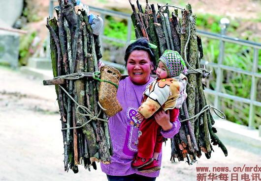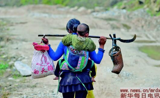 在黔桂乌英苗寨,村民劳作归来(3月26日摄)。