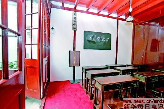 ▲完成修缮的中国社会主义青年团中央机关旧址内“外国语学社”的教室(4月28日摄)。