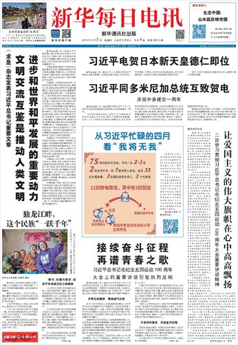 | ( 2019-05-02 ) 稿件来源:新华每日电讯 要 闻 |