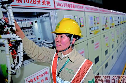 ▲吉兰芳在江苏金湖县一处变电站内检查通信线路。