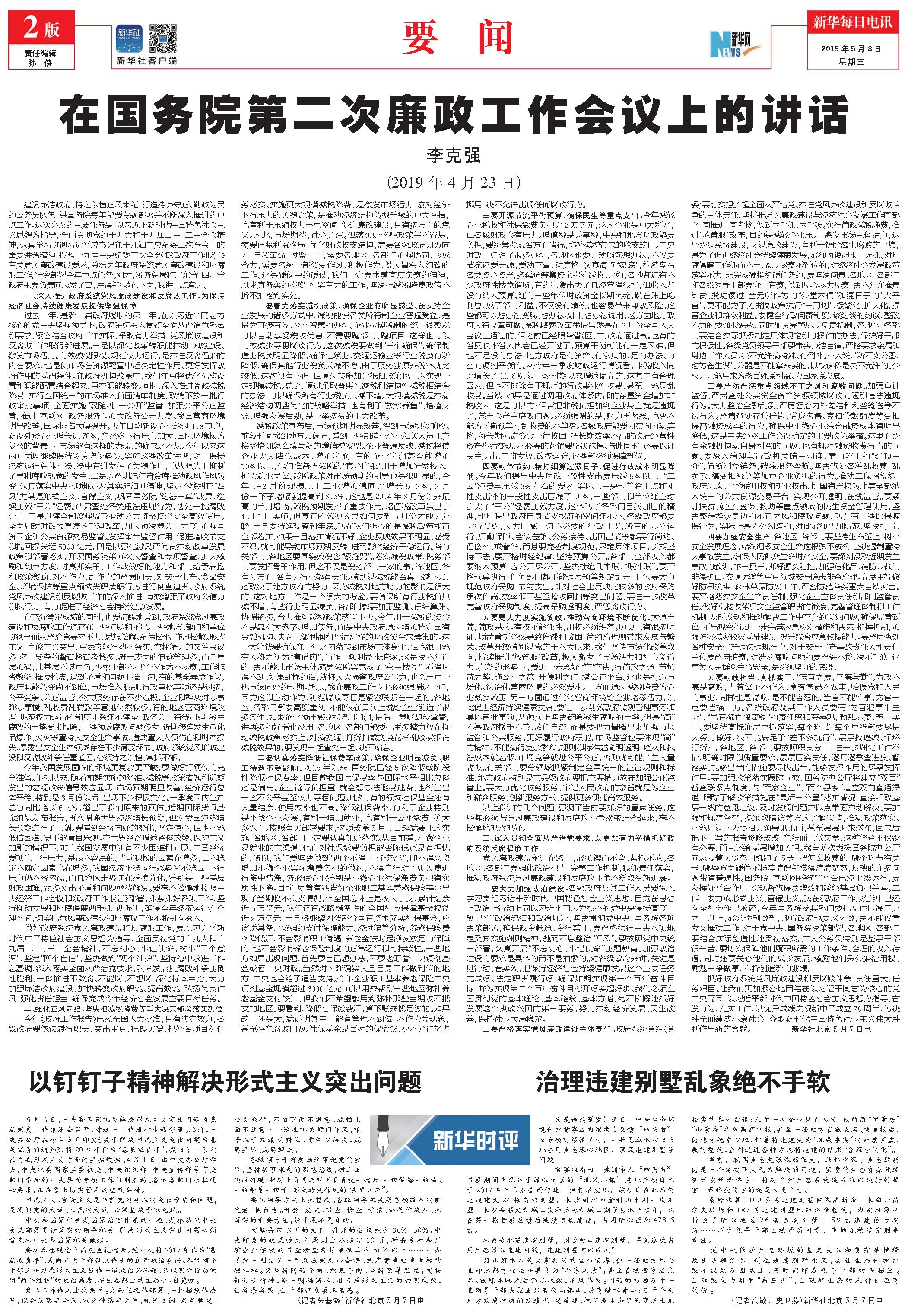 在国务院第二次廉政工作会议上的讲话