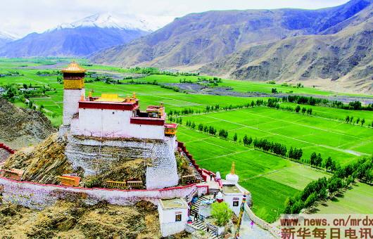 ▲西藏第一座宫殿雍布拉康与西藏第一块农田。
