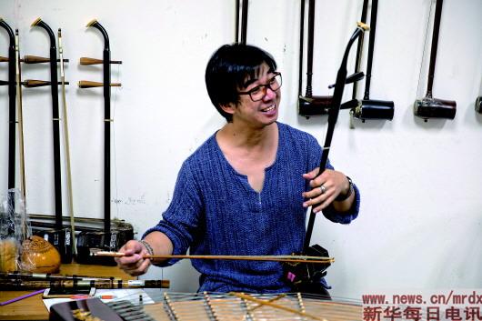 修习泰国民乐的神猜是泰国华侨崇圣大学的一位音乐老师,多年前偶然接触了古筝,便如着魔般走上了对中国乐器的求索之路,结识了许多志同道合的小伙伴,会中文的朋友为他们取名“天弦乐团”。他们演奏过《雨碎江南》,尝试过《瑶族舞曲》和《彝族舞曲》。他们几乎都没去过中国,却能从旋律中窥见中国江南的楼台烟雨,从鼓点中感受中国少数民族载歌载舞的欢腾,想象音乐背后一个多姿多彩的中国。 新华社记者张可任摄