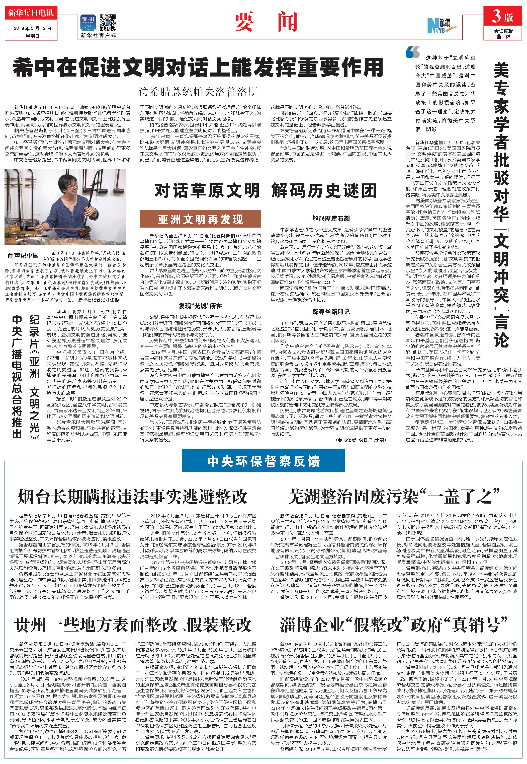 希中在促进文明对话上能发挥重要作用 (2019年05月12日) |