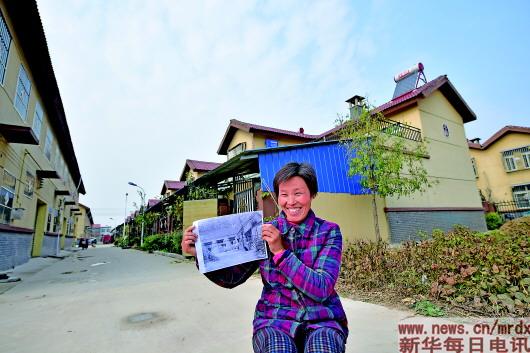| ▲在河南兰考黄河滩区易地搬迁扶贫社区谷营镇姚寨新村社区,居民黄玉英展示搬迁前老房子的照片(2018年11月14日摄)。 新华社记者冯大鹏摄 |