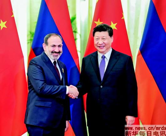 帕希尼扬表示,热烈祝贺中华人民共和国成立70周年,祝贺中方成功举办第二届“一带一路”国际合作高峰论坛。亚中都是文明古国,历史上贸易、文化联系紧密。亚美尼亚从战略高度看待两国关系发展,愿积极参加共建“一带一路”。亚美尼亚致力于坚定打击恐怖主义势力。