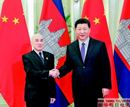 习近平指出,中柬友好向全世界展示了国家间、人民间的真正友谊,将成为构建人类命运共同体千载传颂的佳话。中方珍视同柬埔寨王室的特殊友谊。中国几代领导人同西哈努克太皇建立了亲密友情,我们要把它继承好、发扬好,让中柬友好世代相传。中方将一如既往支持柬埔寨走符合自身国情的发展道路,同柬方一道推动中柬全面战略合作伙伴关系不断迈上新台阶。双方要落实好构建中柬命运共同体行动计划,让两国人民从中获益,为各国之间相互尊重文化多样性、促进文明交往互鉴树立榜样。