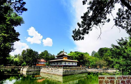 这是拉萨西郊的罗布林卡一景。进入初夏,上万盆鲜花装点着罗布林卡,道路两旁花团锦簇,美不胜收。