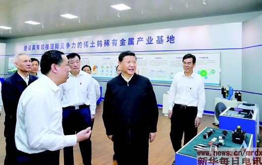 ▲这是习近平在江西金力永磁科技股份有限公司考察,了解赣州稀土产业发展情况。