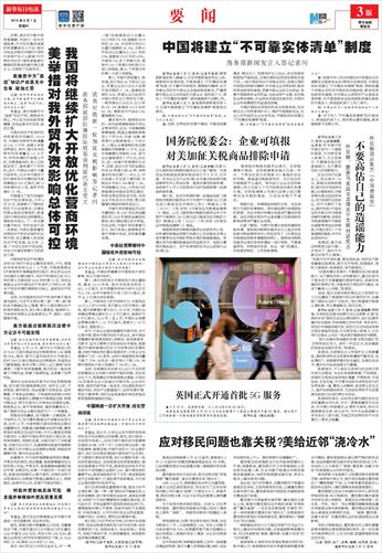 | ( 2019-06-01 ) 稿件来源:新华每日电讯 要闻 |