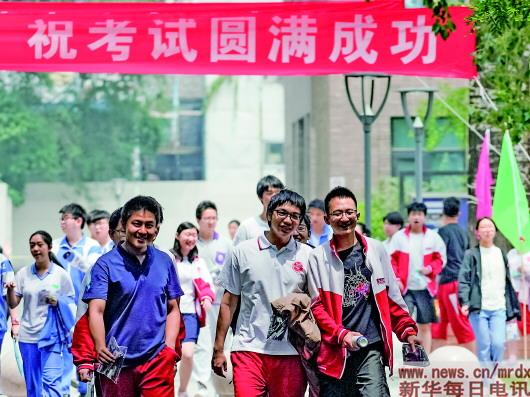 6月7日,在北京大学附属中学考点,考生在上午考试结束后走出考场。当日,2019年高考拉开帷幕。