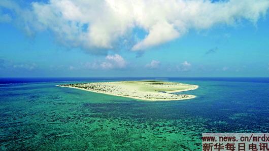 巨幅的红旗,在航拍图片上清晰可见,宣示了我国对中建岛不容置疑的主权。红旗曾六次被台风卷起的海沙掩埋,又一次次鲜红如初。
