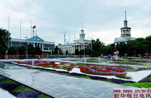 这是6月9日在吉尔吉斯斯坦首都比什凯克拍摄的街景。