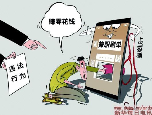 新华社福州6月10日电(记者刘娟、袁慧晶)“想足不出户、动动手指就赚钱吗?诚邀您兼职刷单,按条结算,日入百元不封顶”……类似这样宣称“工作轻松,报酬丰厚”的兼职广告在网上随处可见。