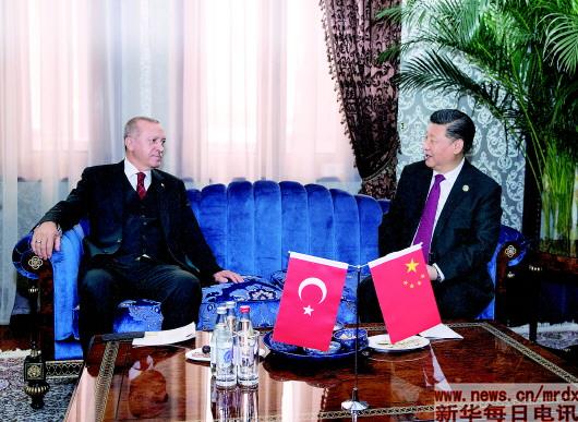 埃尔多安对习主席的意见表示赞同,强调土耳其高度重视对华关系,愿密切两国高层交往,拓展经贸、金融、基础设施建设等广泛领域合作。“一带一路”倡议对土耳其很重要,土方愿积极参与共建合作。