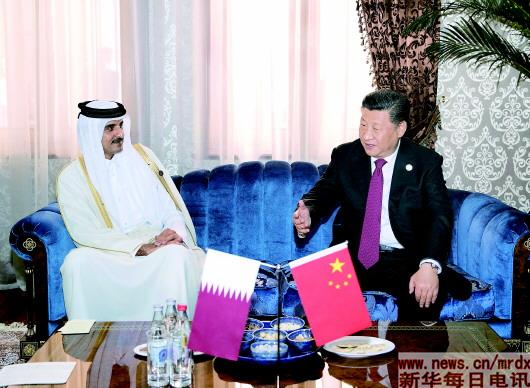 习近平赞赏塔米姆埃米尔积极致力于促进中卡关系发展。习近平指出,今年1月埃米尔殿下对中国进行国事访问,我们就新形势下推动中卡战略伙伴关系发展深入交换意见,达成广泛共识。双方要巩固政治互信,继续在涉及彼此核心利益问题上相互理解支持。双方要加快推进在能源、经贸、基础设施建设、投资、第五代移动通信等领域的全方位合作。双方要加强反恐合作。我们感谢卡方支持中方的反恐和去极端化努力,愿同卡方加强在多边事务中的协调配合。