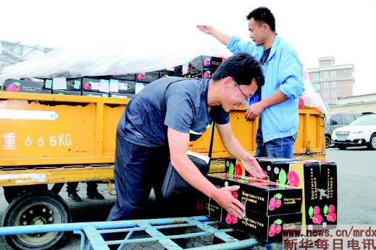 ▲近日,进口樱桃在乌鲁木齐地窝堡国际机场海关处通关后,货主在提货。入夏以来,产自吉尔吉斯斯坦、塔吉克斯坦等中亚邻国的樱桃凭借便捷的空中通道,“乘机”走俏我国水果市场,在北京、新疆、广州等地深受欢迎。