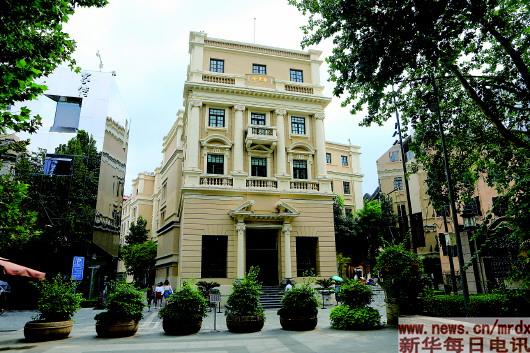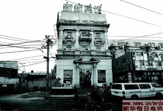 | ◥拼版图片。左图为北京坊劝业场新新宾馆。(2002年摄);右图为改造后的北京坊劝业场北门。 |