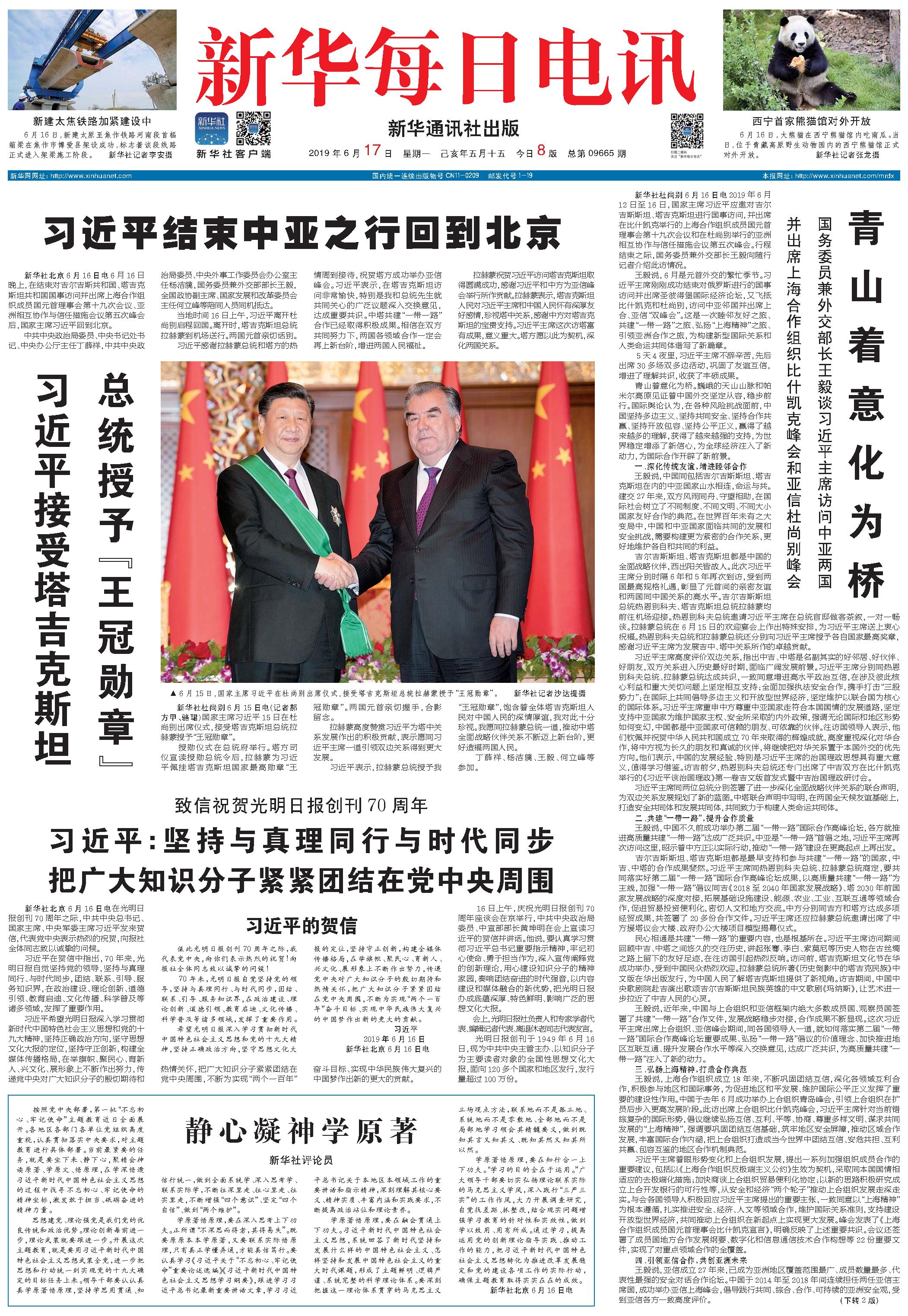 习近平接受塔吉克斯坦总统授予“王冠勋章”