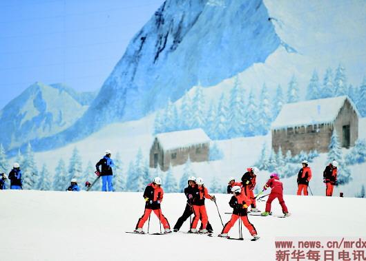 6月18日,游客在广州融创雪世界滑雪体验。地处北回归线上的广州日前迎来华南最大室内滑雪主题乐园——广州融创雪世界。新华社记者邓华摄