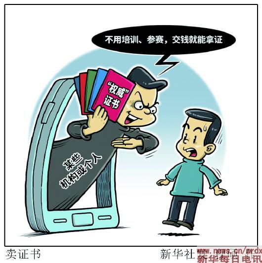 获得如此“权威”的证书只需交钱。“不用考试”“不需要提供什么材料”“我们是直接下证的”……证书卖家均如此表示。