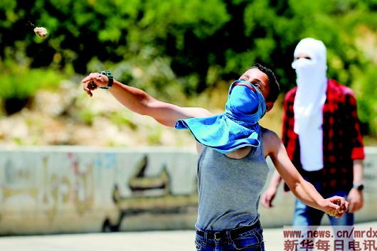 ▲6月24日,在约旦河西岸城市希伯伦附近,一名巴勒斯坦抗议者向以色列士兵投掷石块。