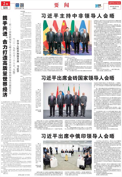 携手共进,合力打造高质量世界经济——在二十国集团领导人峰会上关于世界经济形势和贸易问题的发言(二〇一九年六月二十八日,大阪)中华人民共和国主席 习近平