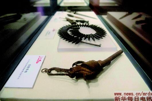 这是六月二十七日在湖南通道侗族自治县通道转兵纪念馆拍摄的红军高级指挥员使用过的手枪。 新华社记者王思维摄