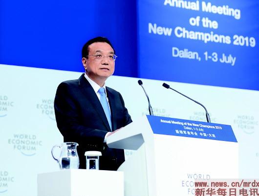 新华社大连7月2日电(记者潘洁、蔡拥军)国务院总理李克强2日上午在大连出席2019年夏季达沃斯论坛开幕式并发表特别致辞。