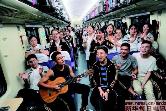 ▲7月2日,在Z40次列车上,秀州中学“内高班”学生唱起欢快的歌曲。当日,浙江省嘉兴市秀州中学的312名内地新疆高中班学生在老师陪同下,从嘉兴乘坐汽车前往苏州站,转乘Z40次列车返回家乡。中国铁路上海局集团有限公司苏州站开启绿色进站通道,开辟候车专区,确保“内高班”学生暑期顺利返疆。       新华社记者季春鹏摄